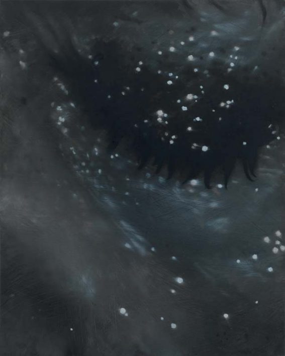 « Les peintures et les aquarelles de Miryam Haddad semblent n’entretenir qu’une relation lointaine avec le monde, tant dans les sujets et les motifs fascinants dont elles sont peuplées que dans la manière dont différentes sources de lumières les traversent de part en part selon des intensités et des orientations contradictoires. Si les bêtes qui en habitent parfois la surface sont identifiables dans leur appartenance à telle ou telle espèce – baleines, chiens, hérons, aigles, crocodiles… –, l’étrange environnement qui les accueille en infléchit le réalisme pour les baigner d’une aura dont la magnitude onirique est portée par un champ chromatique puissamment contrasté. Dans cet univers dont les territoires n’appartiennent à rien de connu se mêlent les réalités vacillantes du conte et de la croyance, du mythe et des récits archaïques du Moyen-Orient. Un lion se mue en une sphinge à la placidité menaçante ; un héron se dresse, solennel, dans un paysage de chaos crépusculaire ; un crocodile gueule béante fraye parmi les ruines d’un temple antédiluvien ; un cétacé échoué sous l’arc lumineux d’un monde kaléidoscopique révèle la mixtion impure d’une eau lourde et de l’éclat voilé d’incises iridescentes réfractées par le prisme d’un monde retranché. Les ruines hiératiques, les autels fissurés, les mausolées en déréliction, les fontaines psychopompes de quelque rite oublié sont les architectures1 de ces paysages fantastiques dont l’apparition irréelle tient de l’épiphanie mais d’une épiphanie troublée par les forces conjointes d’une persistance du divin et de son inéluctable pulvérisation. Nous sommes invités à contempler les restes d’un entre-monde encore grouillant de vie, parcouru par une énergie vitale explosive mais simultanément soumis aux feux de lumières qui, telles les flèches stigmatisant Saint-Sébastien, en transpercent le corps de toute part depuis des dimensions a priori incommensurables. Si les pigments nimbent la surface d’une lumière naturelle intense, une autre source – irréelle – point néanmoins depuis l’horizon diffus des tableaux, projetée depuis l’envers des peintures par une série d’ajours pratiqués comme au scalpel dans la matière picturale. à ces deux incidences lumineuses étrangères l’une à l’autre s’ajoutent des motifs symboliquement liés à la pulsation photonique : ellipses chromatiques intenses, aplats circulaires en forme de disques ou d’astres, masses magmatiques en couleur pleine – oranges éblouissants ou jaunes saturés – qui scandent la surface des œuvres et en fixent les dimensions spatiales surnaturelles. Nous contemplons les étendues d’un entre-monde habité d’une énergie primordiale, un entre-monde parcouru de landes foudroyées et de cieux embrasés, un entre-monde dont l’espace en apparence infini se replie pourtant en une surface à deux dimensions. Sa profondeur provient de l’arrière du tableau – au-delà même de l’œuvre –, par ces ajours irradiants qui éclairent, tels des oculi de cathédrales, cet univers intérieur où semble s’épancher une vie antérieure. »